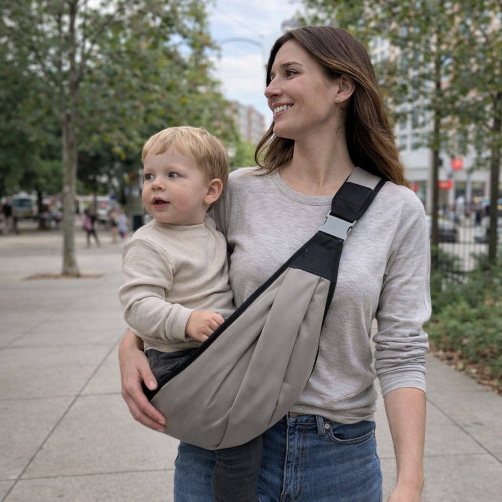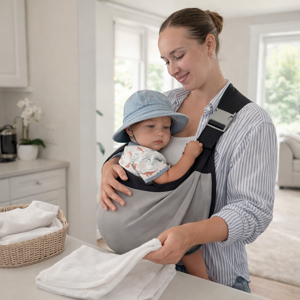This simple hip carrier helps distribute your baby’s weight evenly — so your arms and shoulders don’t have to do all the work.